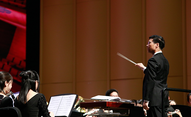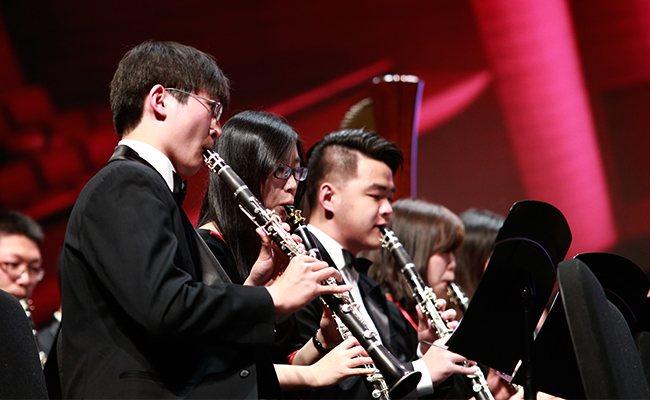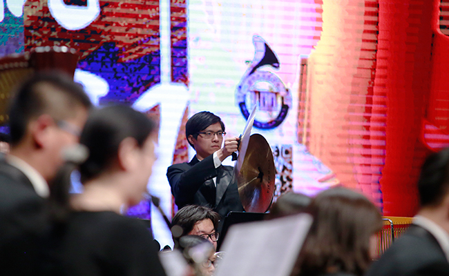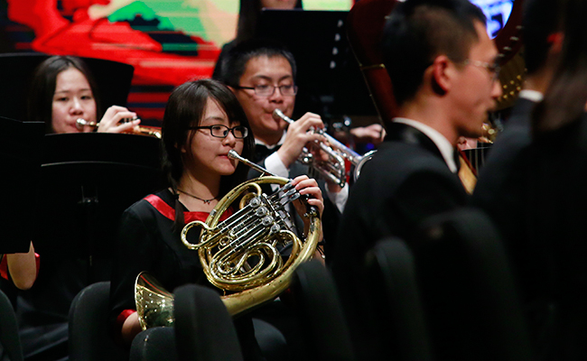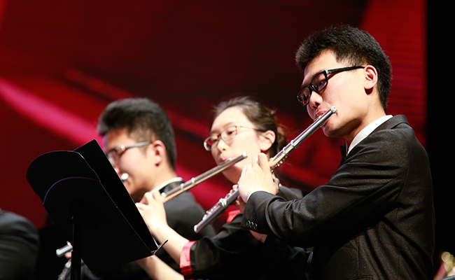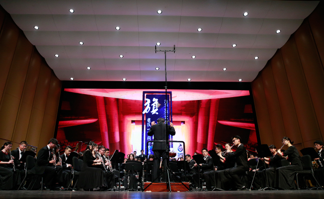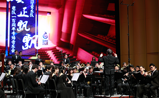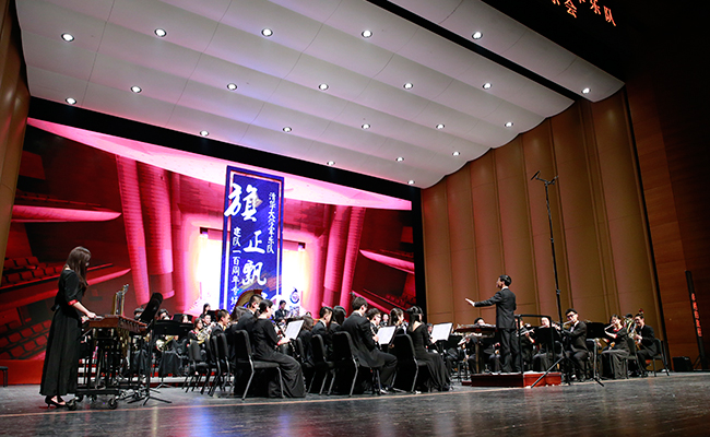 乐竞(中国)网4月28日电 (记者 张 宇 摄)4月24日,“旗正飘飘”——纪念学生艺术团军乐队百周年专场音乐会在新清华学堂举行。近千名军乐队队友与现场1000多名观众共同见证了这一历史性的时刻。