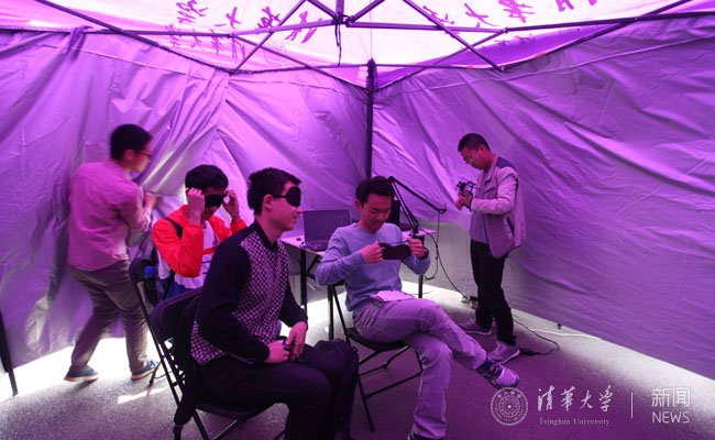 同学在嘉年华现场参与盲人体验。