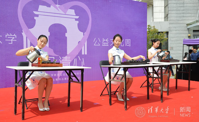礼仪志愿服务团同学进行茶艺表演。