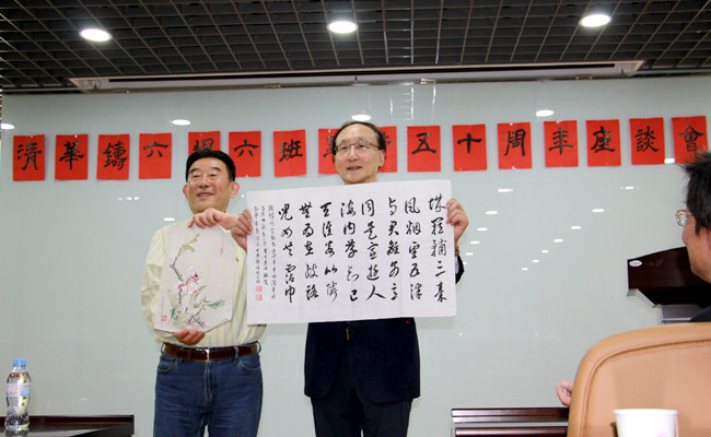 机械系校友赠送书画作品。