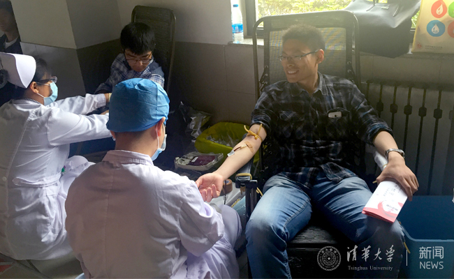 清华学生在献血现场。
