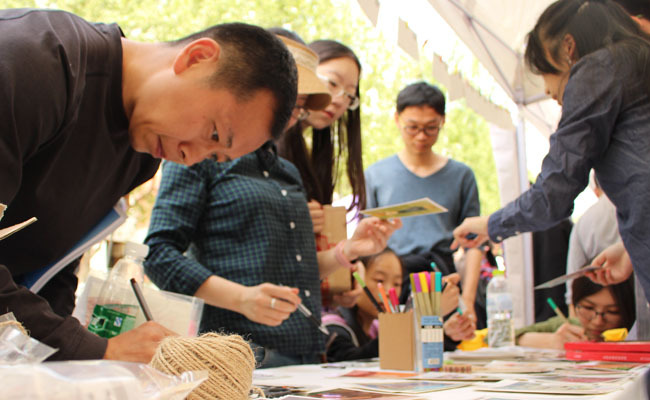 第三部分为素质拓展区,这是首次在创意文化节中加入了素质拓展元素。现场从绘画人像到画明信片寄给未来的自己,再至各社团创意作品义卖,涵盖面广泛,成为本次活动的闪光点之一。