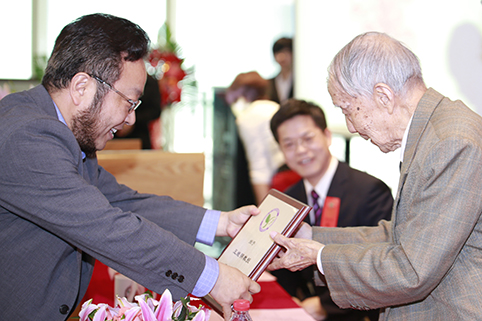 贺克斌为王继明先生颁奖。记者 张 宇 摄