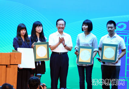 温总理演讲结束后,这四位同学走上讲台,将他们精心绘制的画作送给温总理。温总理非常高兴,他将画册翻到第二幅2009年来访清华园的场景,深情地回忆道:“记得那时候有同学问我:‘如果祖国是一棵大树,我们是树上的一片叶子,那么总理您是树上的哪个部分?’,我回答说,我和你们一样,也是树上的一片叶子”。总理对于人民真挚的爱溢于言表,深深打动了现场的同学们,大家报以热烈的掌声。