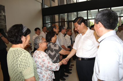 与化工系教师代表亲切合影留念后,在师生们的热烈掌声中,习近平即席讲话。他说,很高兴回到清华园,尤其是与自己上学时的各位老师见面,感到非常亲切。来到这里,就回想起30多年前大学时代那段难忘的经历。在清华受到的教育,对自己的思想成长和各方面发展都有很大意义,对后来走向社会也起到了很大的指导作用。