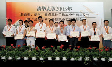 校党委书记陈希、校长顾秉林十分关心毕业生就业工作,多次听取就业中心和院系有关工作情况汇报,到院系进行调研和检查指导,在全校各种会议上反复强调要重视毕业生就业工作,针对工作中的问题做出重要批示。在每年毕业生动员大会上,学校主管领导亲自给毕业生做动员,“启航,从祖国最需要的地方开始”已成为广大毕业生共同的认识和他们心口相传的承诺。学校各级领导还经常深入到院系班级座谈,并亲自为国家重点单位推荐优秀毕业生。例如,我校2005届毕业生陈旻同学签约新疆马兰基地,王娜同学回西藏家乡工作,都是在校系领导的多次推荐和直接关心下最终落实的。