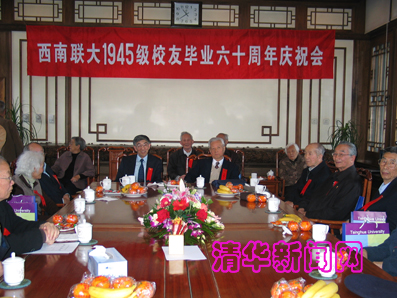 【新闻中心讯 记者 王玉杰 摄影 薛建团】“万里长征,辞却了五朝宫阙。暂驻足衡山湘水,又成离别。绝徼移栽桢干质,九州遍洒黎元血。……”一曲《西南联大校歌》让这些耄耋老人仿佛又回到了硝烟弥漫的岁月,那些逝去了的年轻时光里,勤奋乐观的一代人,几经了艰难与困苦的洗礼,依然精勤治学。我校毕业六十年(1945届)的老校友、西南联大时期的清华学长们在我校校庆九十四周年的今天来到母校,抚今追昔,欢聚一堂。