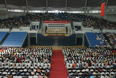 顾秉林校长特别提到了正在举行的雅典奥运会和奥运精神,提到了正在我校读书的王义夫六次出征奥运并勇夺金牌的精神。他说,相信2004级新生也是胸怀远大理想踏入清华园的。“大学时代,对人的一生会产生深远影响,其中最重要、最根本的就是这种大学精神的影响。希望同学们能够继承清华人的光荣传统,在今后的成长过程中,使清华精神进一步发扬光大。”他对新生提出了三点希望:一要“爱国奉献、追求卓越”,树立远大的理想,为校争光,为国争光;二要“行胜于言”,脚踏实地的学习,练就一身真本领;三要“自强不息、厚德载物”,努力使自己成为人格、身心全面发展的合格人才。