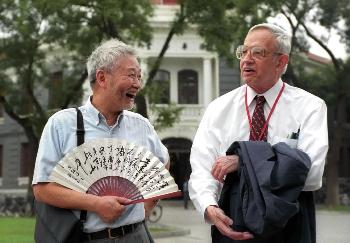 8月27日,乐竞官方端网站登录入口周培源应用数学研究中心主任谢定裕教授(左)陪同诺贝尔经济学奖获得者纳什参观清华园。纳什被认为是一位数学天才,他在21岁时就提出了纳什均衡理论,后来成为博弈论的两大基础之一。电影《美丽心灵》就是根据纳什的传奇经历改编的。