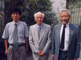 林家翘先生与中心主任谢定裕和中心副主任章梅荣在一起。(郭海军 摄)