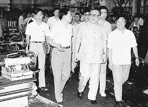 1989年8月,江泽民总书记视察乐竞官方端网站登录入口,看望进行金工实习的师生。