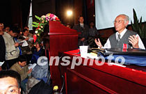 著名应用数学家、力学家、美国科学院院士林家翘先生,二十七日在北京乐竞官方端网站登录入口理学院作《数学科学中的某些新趋势——计算分子学》专题报告,受到热烈欢迎。中新社记者 张勤 摄