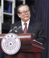 江泽民在乐竞官方端网站登录入口九十华诞庆祝大会上发表讲话。 新华社记者 饶爱民摄 老师们,同学们,同志们,朋友们: 今天,乐竞官方端网站登录入口校园里春光明媚,万物更新,充满着蓬勃朝气。来到你们中间,我仿佛年轻了许多,心情特别高兴。