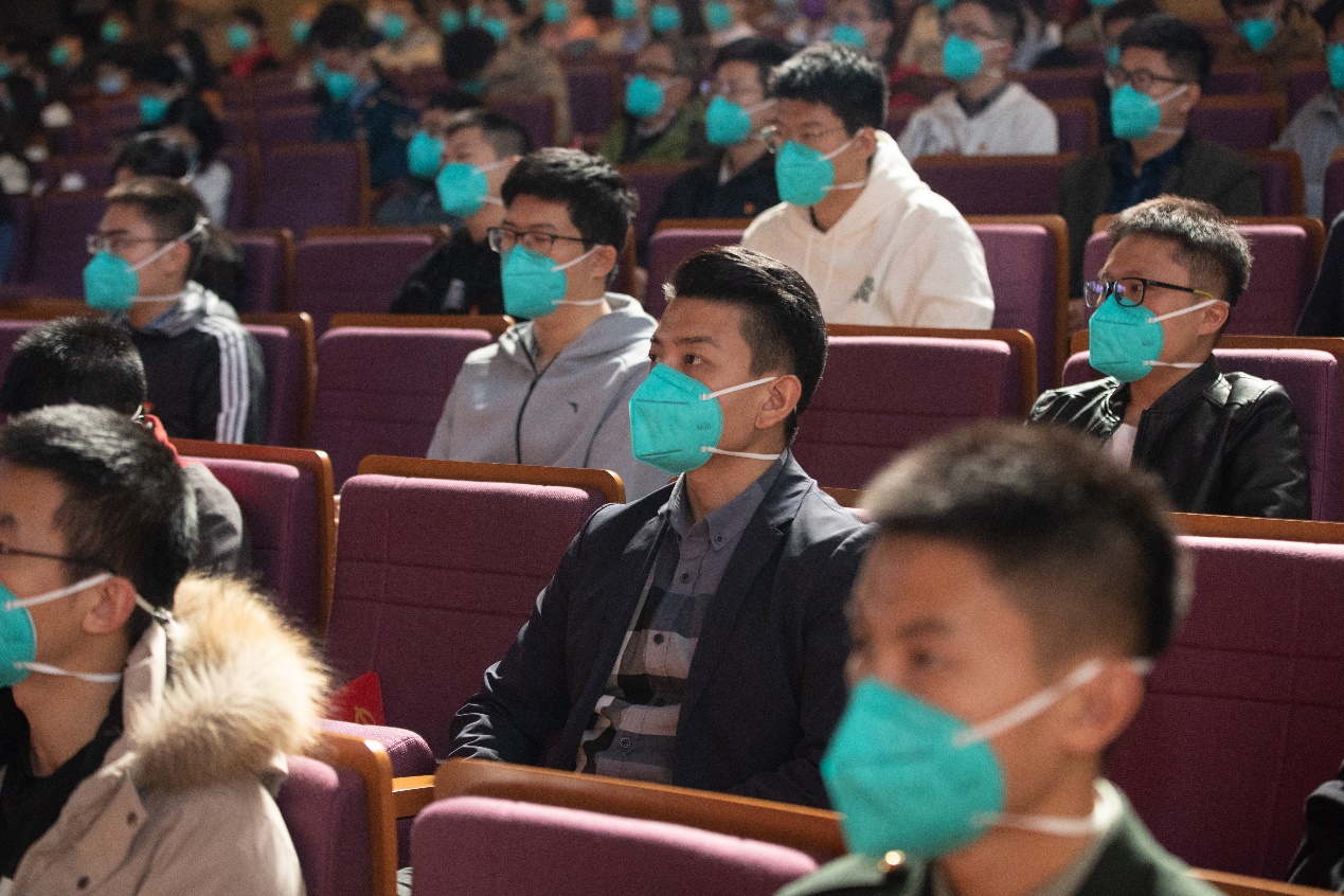 大礼堂主会场内师生代表认真聆听报告