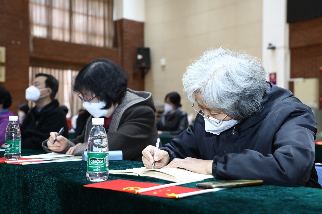 离退休老同志在听取报告中认真记录