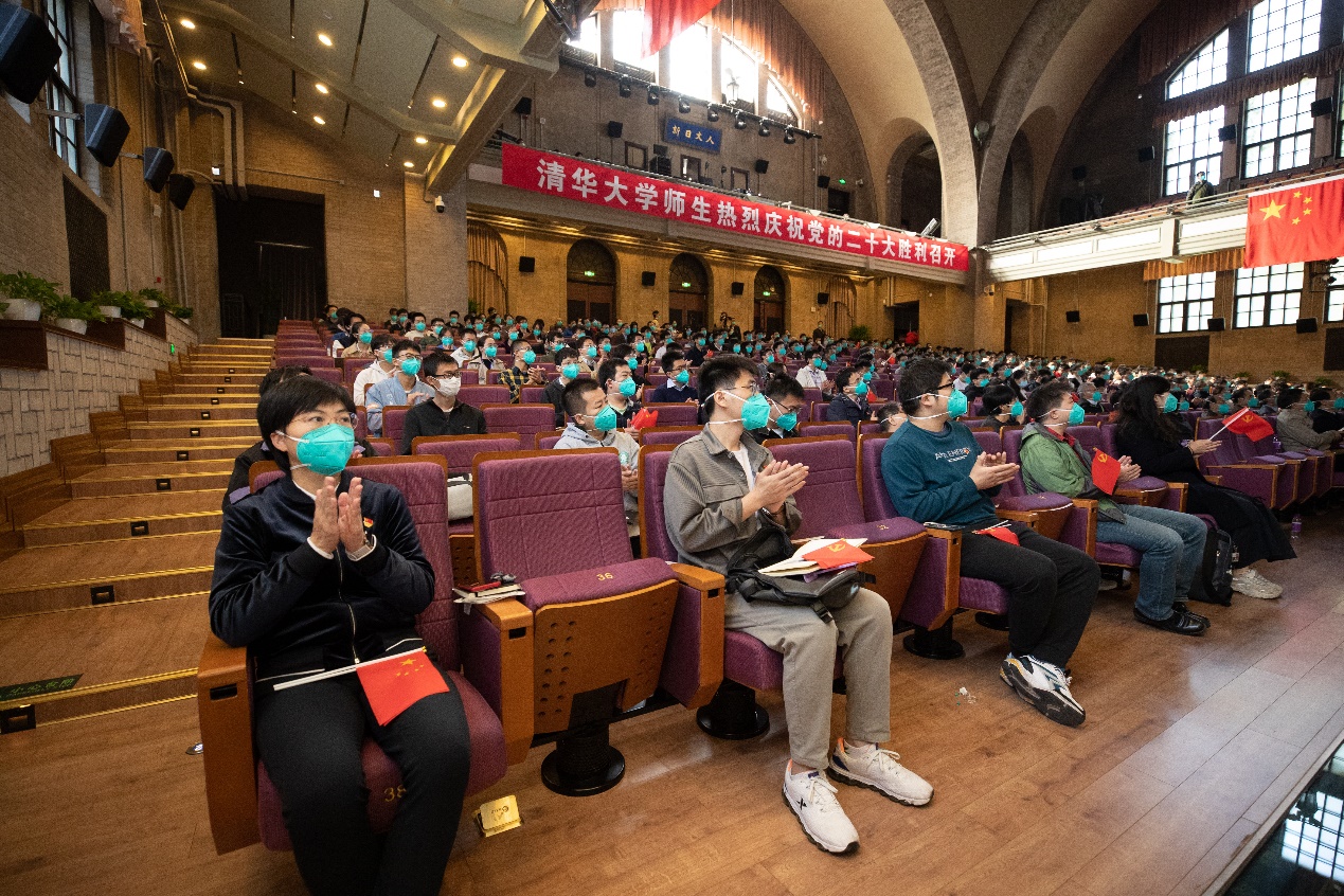为第一时间学习党的二十大会议精神,各院系部处分别组织教职工和学生收看、收听开幕会直播。在这个举世瞩目的重要时刻,清华师生在校园各个会场内相约屏幕前,共同观看时代盛会、热议祖国未来、激发报国情怀。