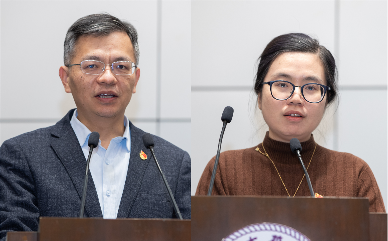 社科学院党委书记刘涛雄、电子系通信所党支部书记陶晓明分别结合特色做法与经验成效交流了党史学习教育的收获与体会。