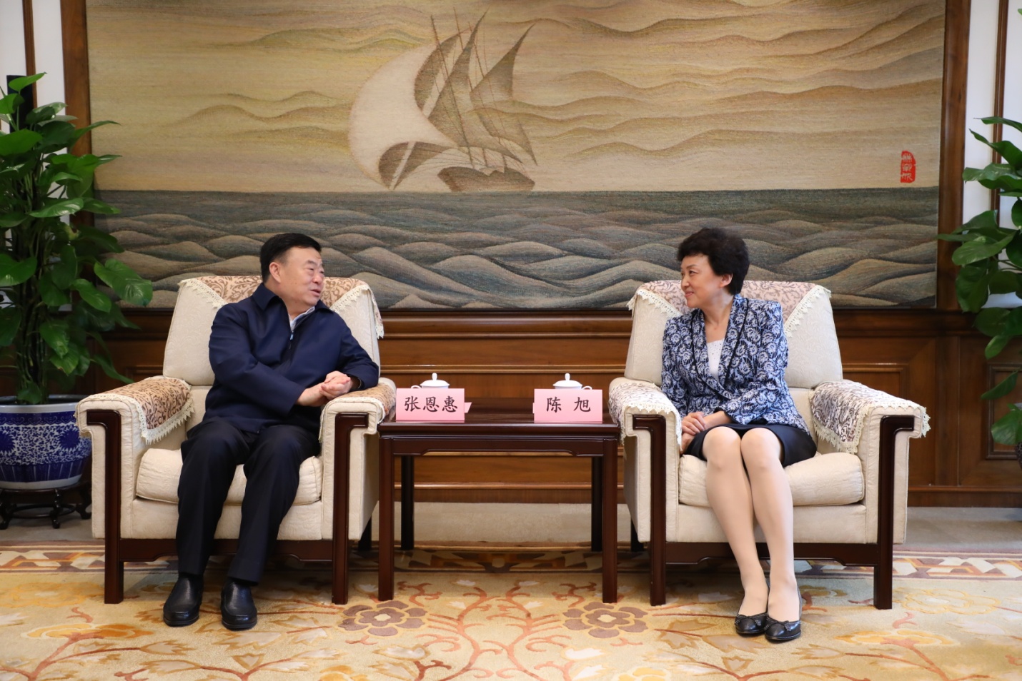 陈旭与张恩惠会谈交流