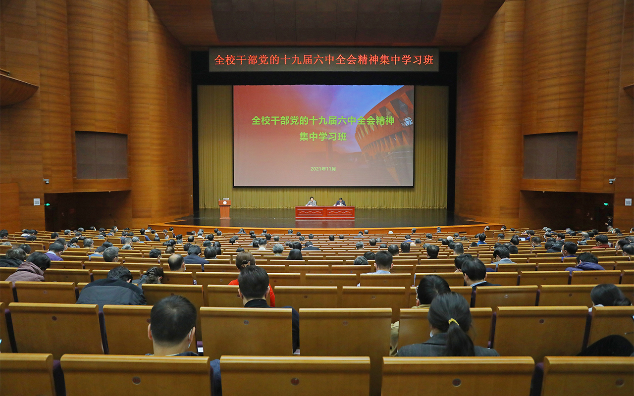 校党委书记陈旭在讲话中指出,召开全校干部党的十九届六中全会精神集中学习班,是持续跟进学习习近平新时代中国特色社会主义思想,认真贯彻落实党中央重大决策部署的实际行动,也是自觉用党的创新理论引领推动学校各项事业高质量发展的必然要求。学校党委印发了学习宣传贯彻六中全会精神的通知,各单位和全校师生要认真落实通知要求。作为一项重大政治任务,学习贯彻六中全会精神要同工作实际结合起来,同持续学习贯彻习近平新时代中国特色社会主义思想相统一,同扎实开展党史学习教育相贯通,同深化巡视整改、加强党的领导和党的建设、推进全面从严治党相促进,同“十四五”规划开好局起好步、推动内涵式高质量发展、做好岁末年初的工作相结合,努力做到学深、悟透、真信、笃行,确保全会精神在学校落实落地,形成生动实践。