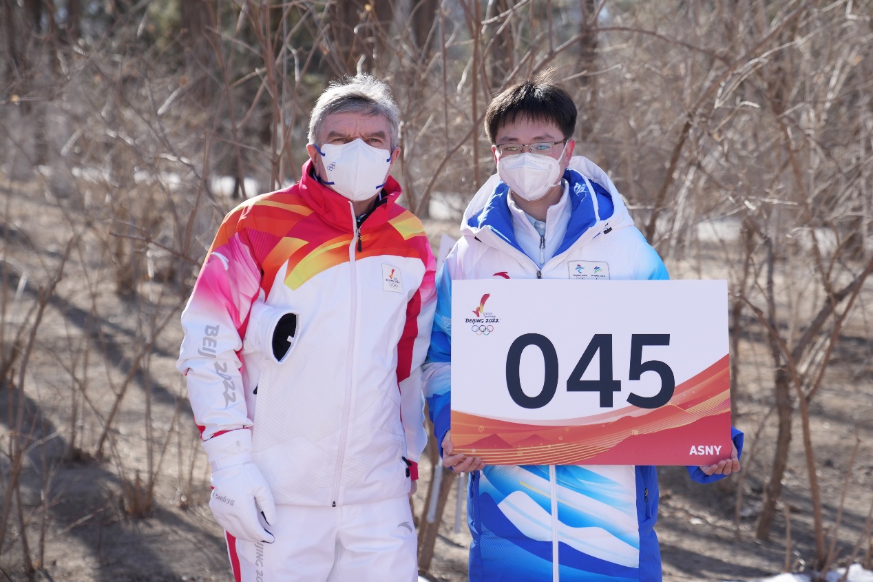 “巴赫先生亲切地和我打招呼,在我向他介绍火炬传递注意事项后说,他说:‘感谢你,讲解得很仔细!’”李宗阳难掩激动接着说道,“近距离感受到巴赫先生强大的亲和力,让原本紧张的我放松下来,共同享受圣火传递带来的热情,并主动向巴赫先生赠送了一枚清华校徽pin,并向他讲解了清华校徽的含义。巴赫先生认真地听完我的讲解后,也开心地回赠了我一枚心形徽章,并热情地和我合了影。”