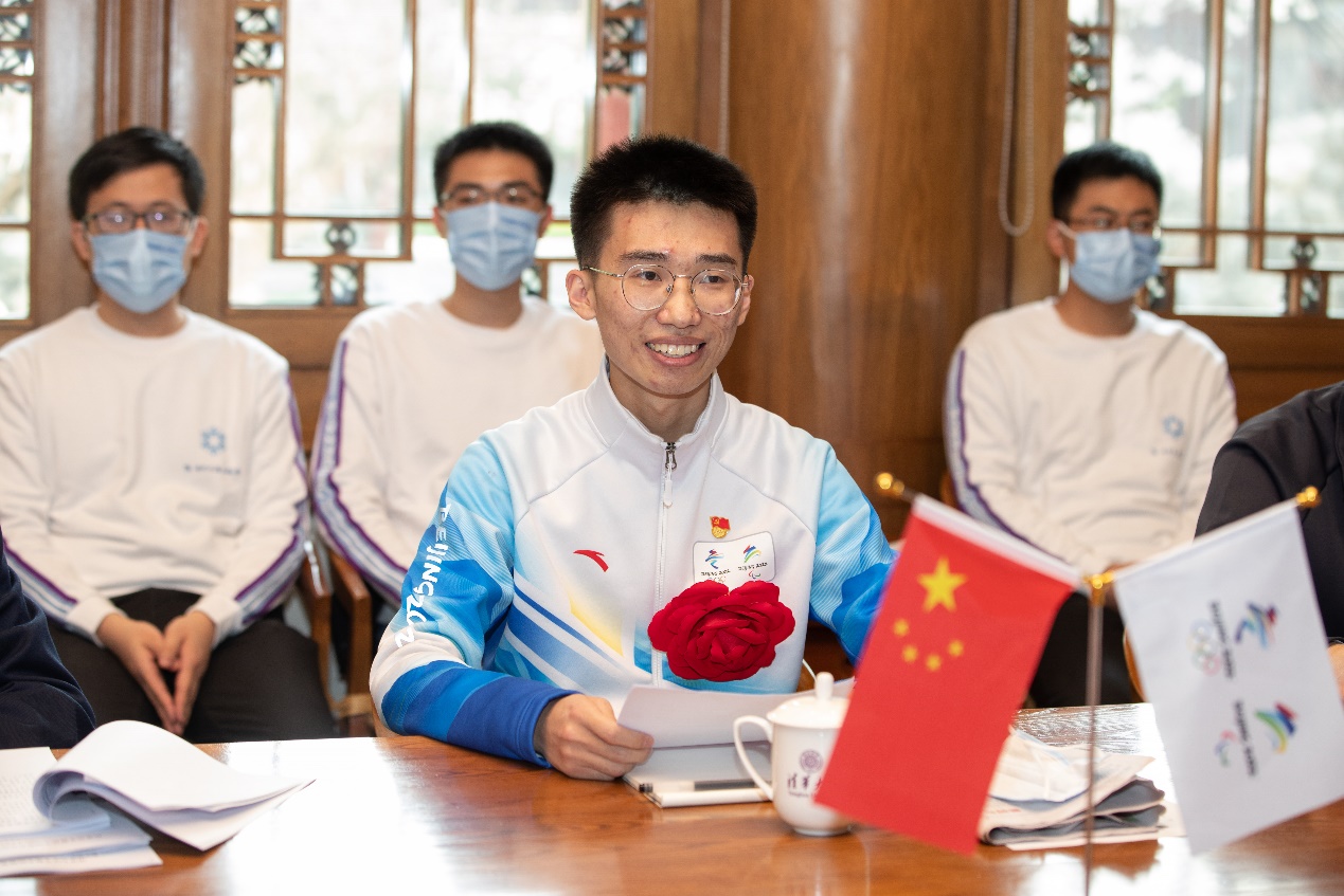 反兴奋剂组志愿者代表、自动化系2020级硕士生牛家赫介绍了延庆赛区反兴奋剂组72名清华师生志愿者的服务经历。为了保障每一块干干净净的奖牌,延庆赛区反兴奋剂组志愿者克服闭环时间长、疫情防控风险高、工作环境艰苦、工作强度大等多重困难,主动奉献、毫不懈怠,并组建临时党支部,建立党员先锋模范岗,充分发挥基层党组织战斗堡垒的作用,圆满完成了超700人次的兴奋剂检查陪护任务。