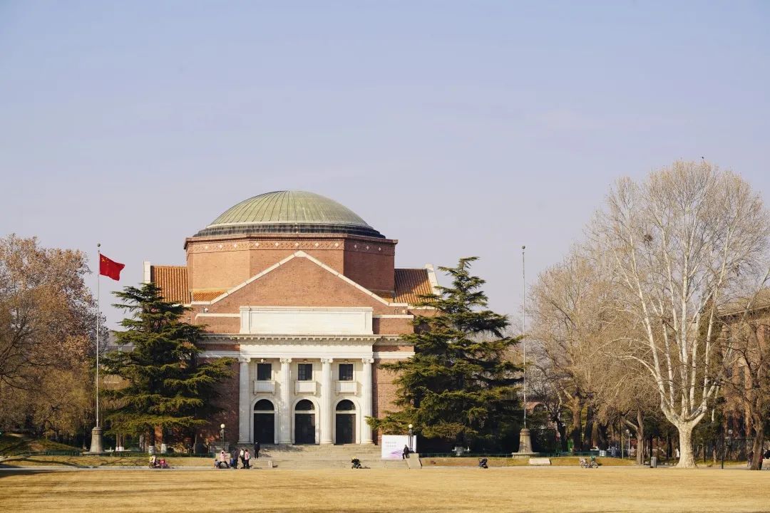 大礼堂前飘扬的红旗
