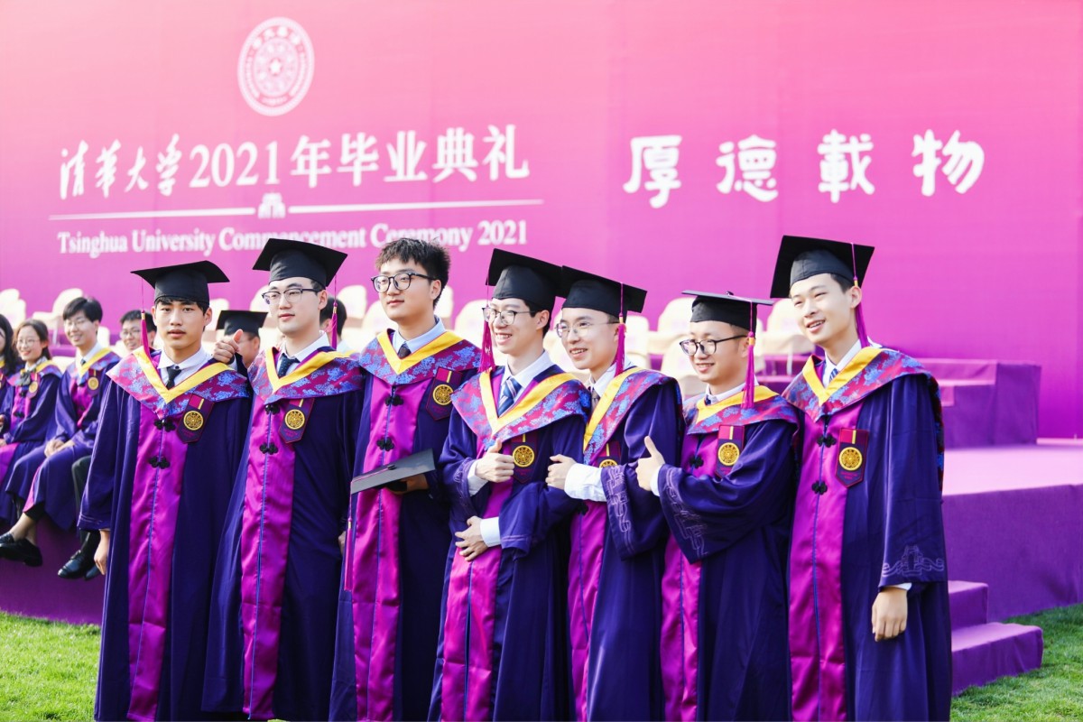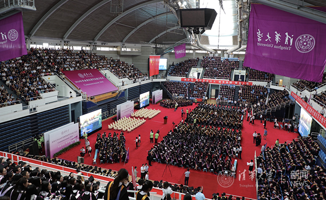 2021年,学校综合考虑疫情形势,以线上线下相结合的方式举行毕业典礼,其中线下在东大操场和综合体育馆集中举行。除当年毕业生外,2020年毕业生也可返校参加毕业典礼。学校设计更加轻薄透气的新版学位服,融入清华紫、二校门、紫荆花与丁香花等元素,并向毕业生赠送包含校徽、个人姓名和学号的定制款纪念徽章,设计细节得到毕业生们一致好评。
