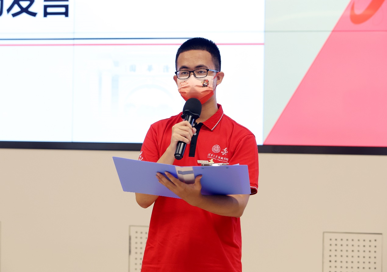 周秉坤作为高年级学生代表欢迎新一届学弟学妹们进入清华园,并详细介绍了书院丰富的通识教育资源,号召同学们利用好书院的学习资源,积极参加各类活动,在学习过程中打好基础、融会贯通。周秉坤寄语学弟学妹们担负起兴东西文明之重任,在求理寻真中追求卓越。