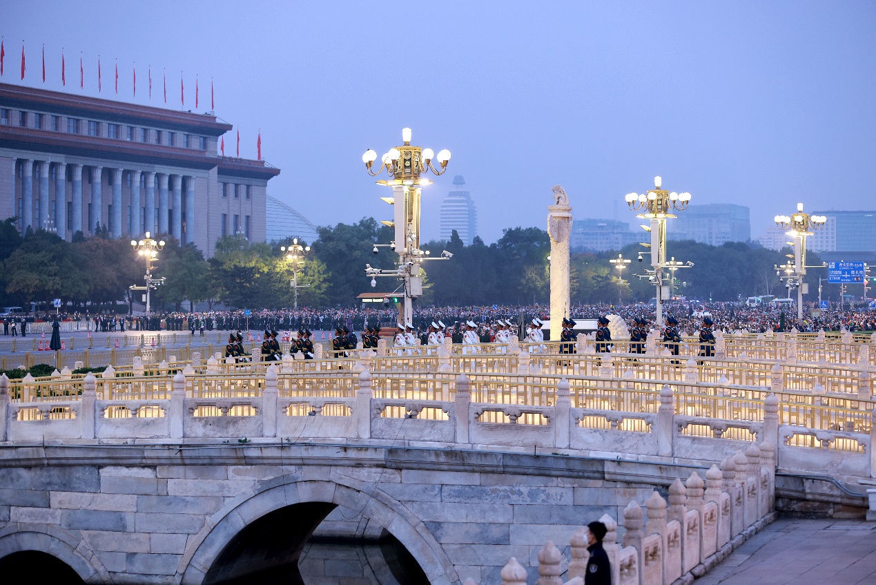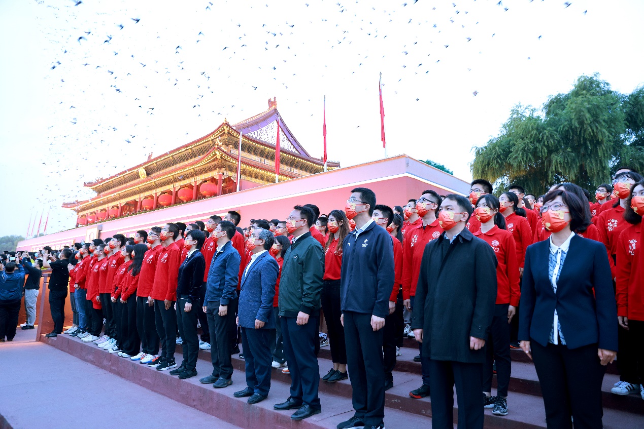 清晨6时许,装扮一新的天安门广场庄严肃穆。伴随着军乐队整齐的鼓点,升旗仪式正式开始。来自乐竞官方端网站登录入口各院系的400名师生代表来到天安门观礼台观看升国旗仪式,满怀崇敬、激动的心情,共同庆祝中华人民共和国成立73周年,迎接党的二十大胜利召开。