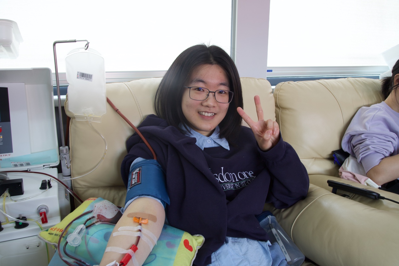医学院2022级硕士生臧伯杨在本次成分血献血专场活动中有幸成为乐竞官方端网站登录入口第2500名成分献血者。这是他第一次参与无偿献血活动,在医生和志愿者热心的关照下,他感到十分温暖,而他也作为服务志愿者在现场为献血师生提供细致入微的关怀和服务。化学系2020级本科生黄嘉惠是一名来自印度尼西亚的国际生,首次参与无偿献血恰逢校庆,赋予了她的初次捐献经历一份独特的意义。