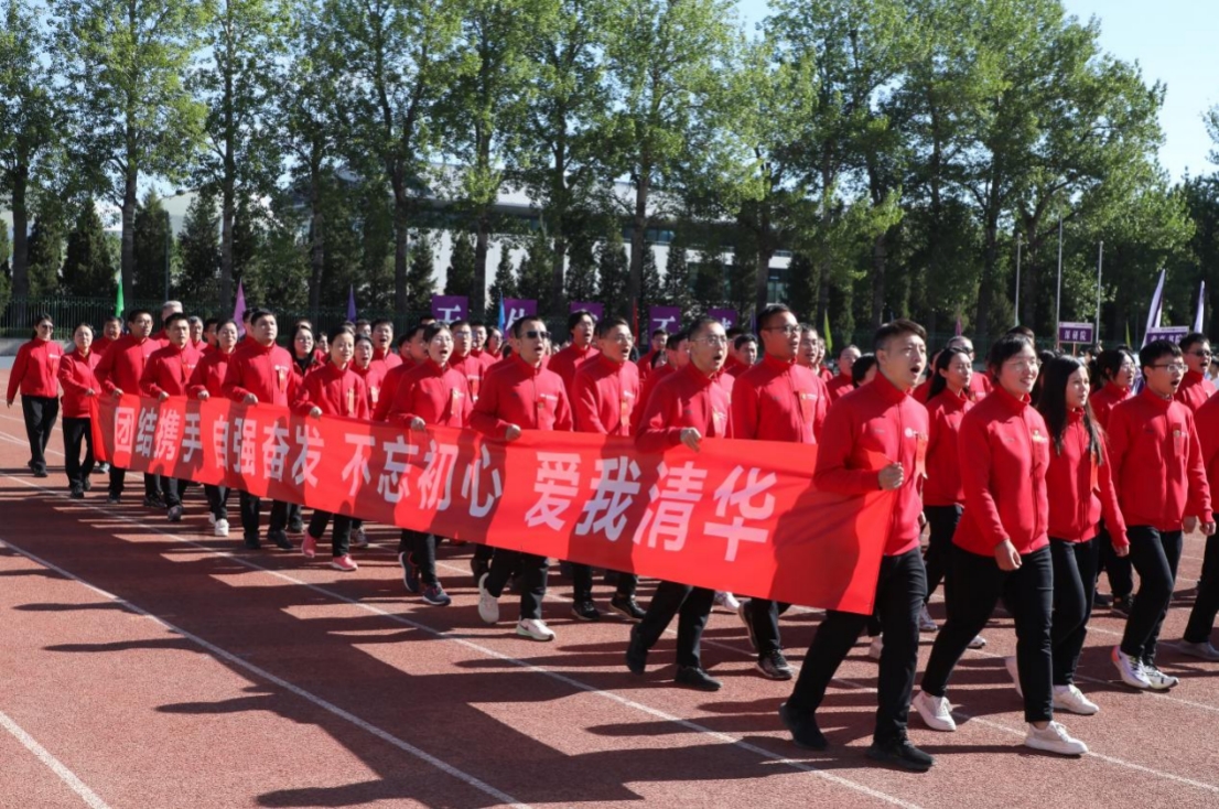 早上8:00,国旗仪仗队、校旗方阵、裁判员方阵、体育社团方阵、各院系运动员方阵和校友代表方阵在引导员、旗手和领队老师的带领下,依次进入东大操场,他们迈着整齐划一的步伐,喊着响亮的口号,展现出清华人的激情与活力。全体观众也以高昂的情绪,为各个方阵鼓掌喝彩。