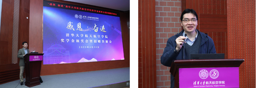航天航空学院院长曹炳阳表示,学院正在不断完善奖助学金体系,通过设置学业、科研、社工、实践、志愿等十余类奖学金项目实现全方位覆盖,他同时感谢各界团体、企业和校友对完善奖助学金体系的资助。