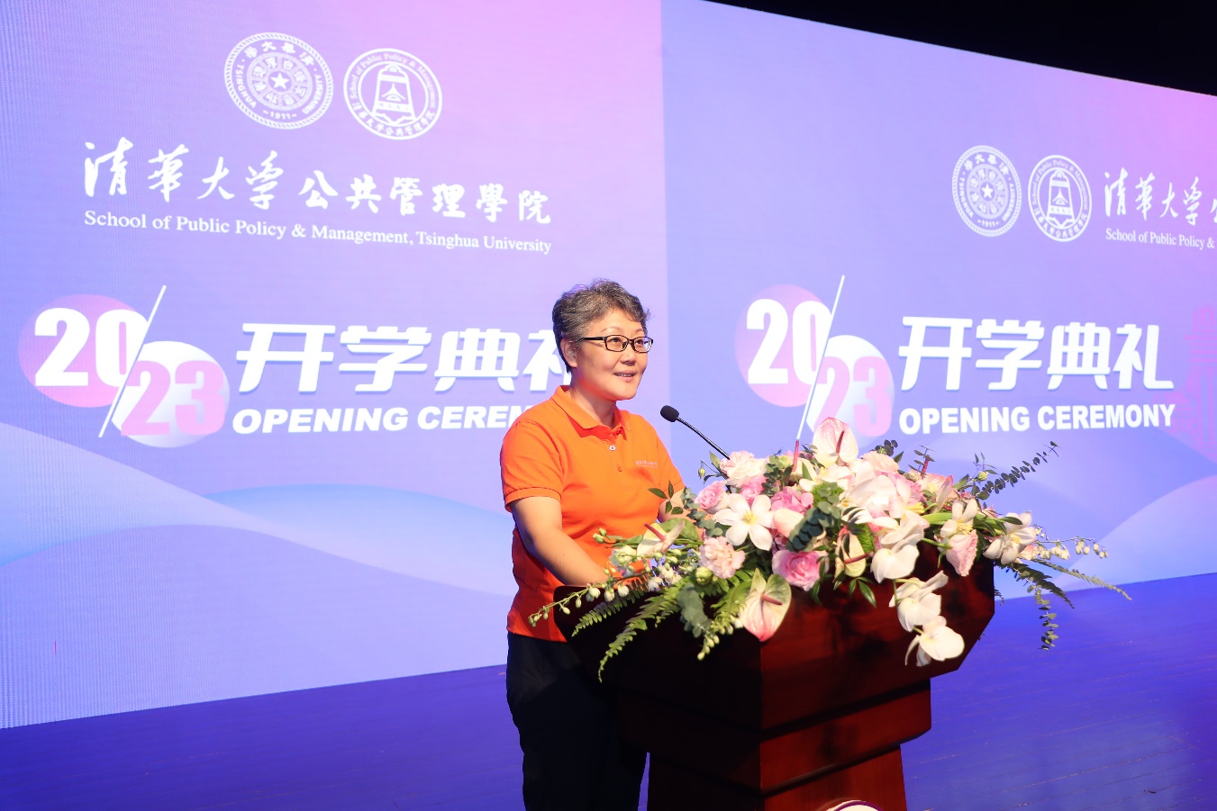 谢矜代表学院向研究生新同学表示欢迎。她表示,2023级研究生新生来自世界各地,具有不同专业背景和成长经历,今天汇聚在公管学院,共同开启学习生涯。