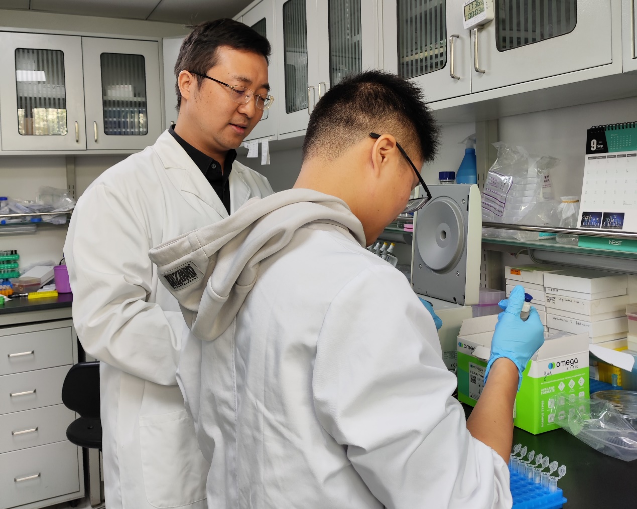 陈浩东(左)指导学生做实验
