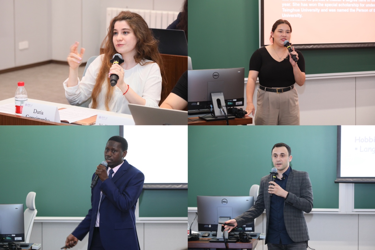 本次活动分为校园生活和独特探索两个主题进行。校园生活主题中,社科学院2021级硕士生达里亚(Daria)、2020级本科生尤利娅(Yulia)讲述了她们来到清华后学习中华文化、感悟“中国式浪漫”的心路历程;公管学院2022级硕士生埃布(Ebou)讲述了在学院足球队与队友们共同奋斗的经历;电子工程系2021级博士生尼古拉斯(Nicholas)作为跨文化交流的倡导者,分享了在校园里建立语言交流俱乐部的故事。