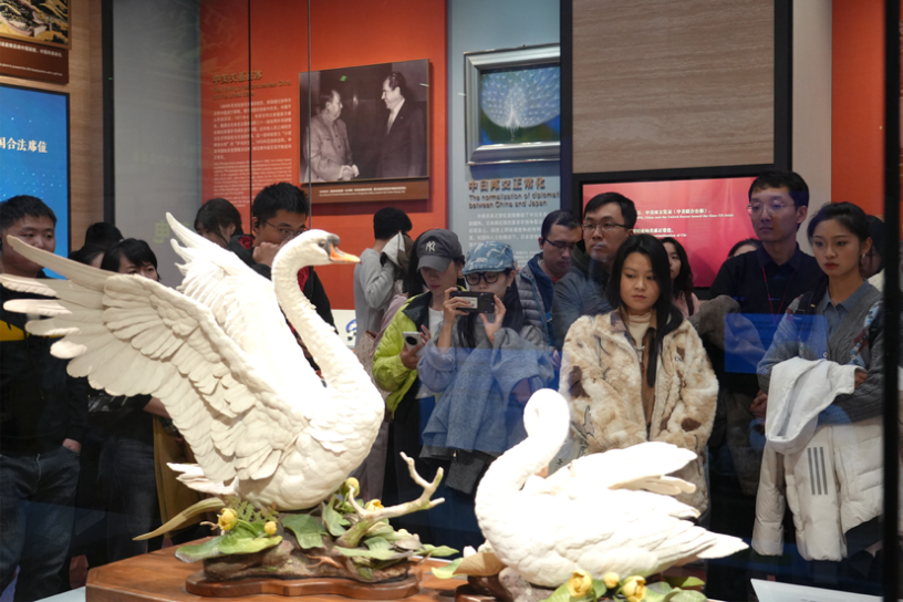 文明因交流而多彩,文明因互鉴而丰富。在中央礼品文物管理中心,实践支队参观了以时间为脉络的主展区和《世界舞台 大国担当》《缤纷世界 文明互鉴》两个专题展区。回首新中国走过70余年的峥嵘岁月,中国外交以栉风沐雨的毅力与披荆斩棘的决心,为中华民族的伟大复兴作出了卓越贡献。通过深入了解外交礼品背后的故事,同学们深刻体会到,不仅要传承和发扬中华美学精神,更要以艺术文化为媒介讲好中国故事,为全面推进中国特色大国外交、推动构建人类命运共同体贡献清华学子的智慧和力量。