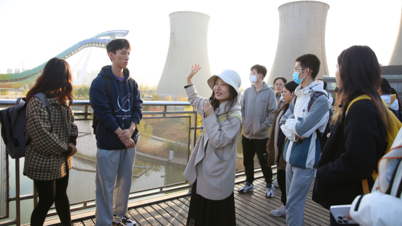 绿色发展是高质量发展的底色,新质生产力本身就是绿色生产力。在首钢园规划设计部建筑设计师张逸凌的带领下,实践支队了解到首钢老工业基地搬迁与调整的历史以及园区的转型发展之路。走进高线公园,原首钢的焦炉和高炉等工业遗存与湖光山色相映成趣,似在静静地诉说着首钢发展方式绿色转型的辉煌历史。“在首钢园内,昔日的高炉和旧厂房经过现代化改造,成为文化与生态并存的公共空间,完美诠释了旧工业区的更新与重生。”土木建管系硕士生黄雅方表示,要更加关注生态文明建设的时代命题,为美丽中国建设作出应有贡献。