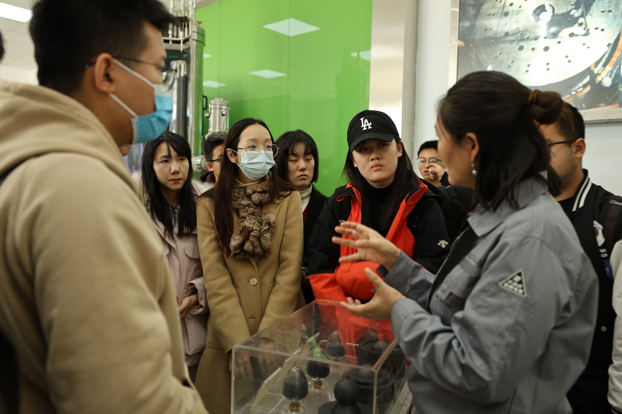 在展厅中,同学们了解到全球首座第四代核电站——山东荣成石岛湾高温气冷堆示范工程已于2023年底商运投产,这项技术的研发正是从“200号”实验室起步。核研院教师刘凌介绍了高温气冷堆的历史沿革、技术特点及最新研究进展。展示环节,同学们还亲手触摸高温气冷堆示范工程所采用的全陶瓷包覆颗粒球形燃料元件。