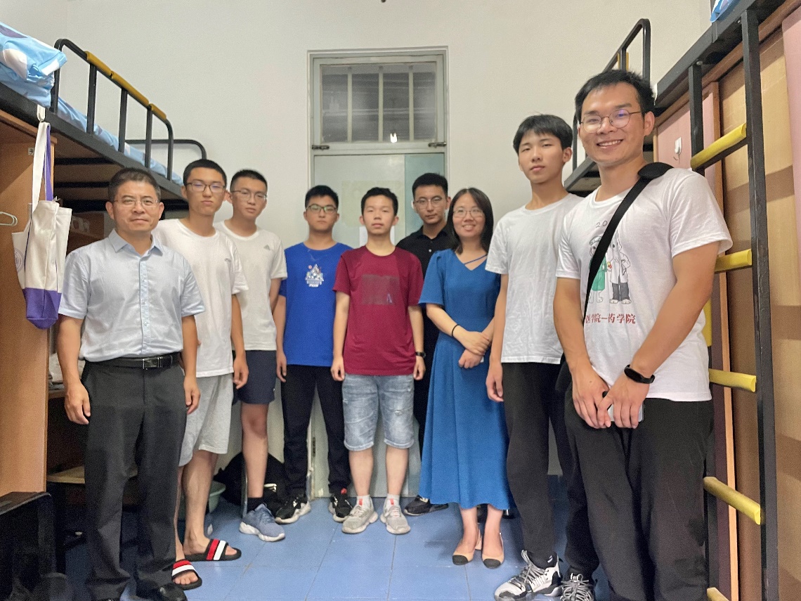 刘清飞和辅导员到宿舍看望同学。