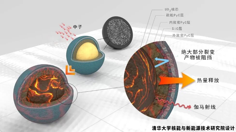 高温堆安全性第一道屏障——燃料球作用示意图。
