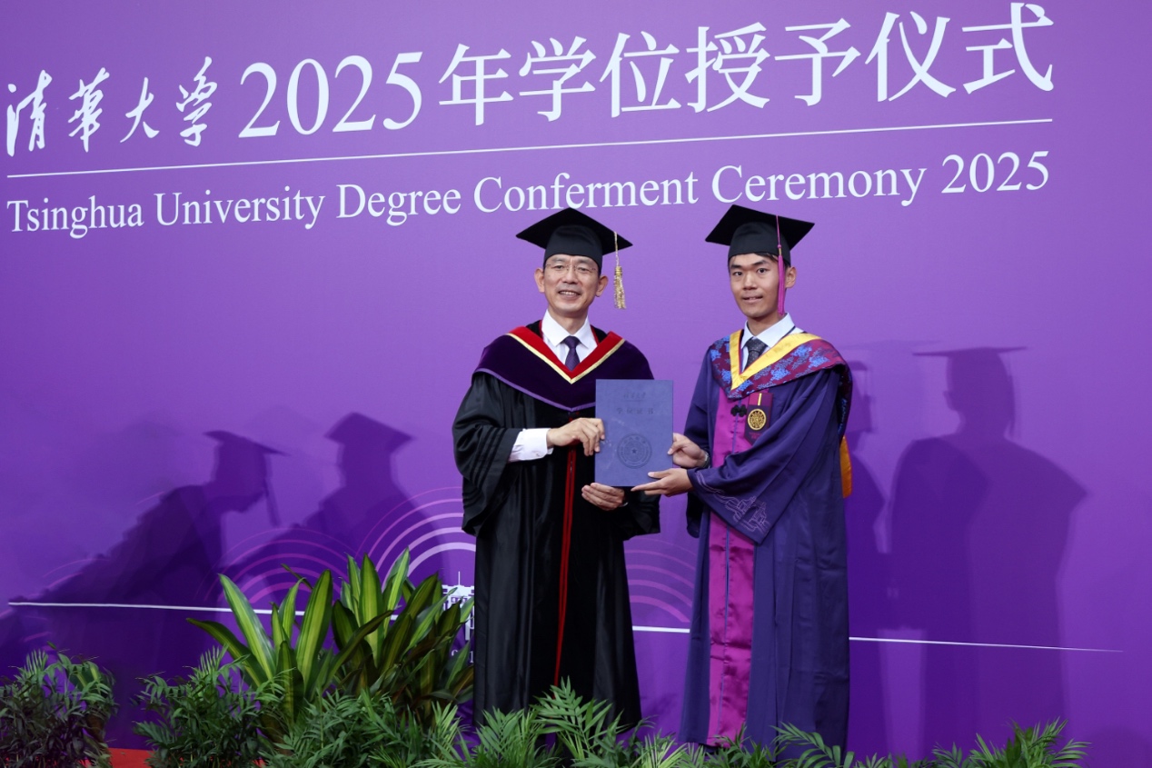 致理书院2021级本科生党杰作为毕业生代表发言。她以“奋力成长”为关键词,分享了清华园四年时光里在挑战中突破自我、拓展边界,与时代同向同行的收获感悟。