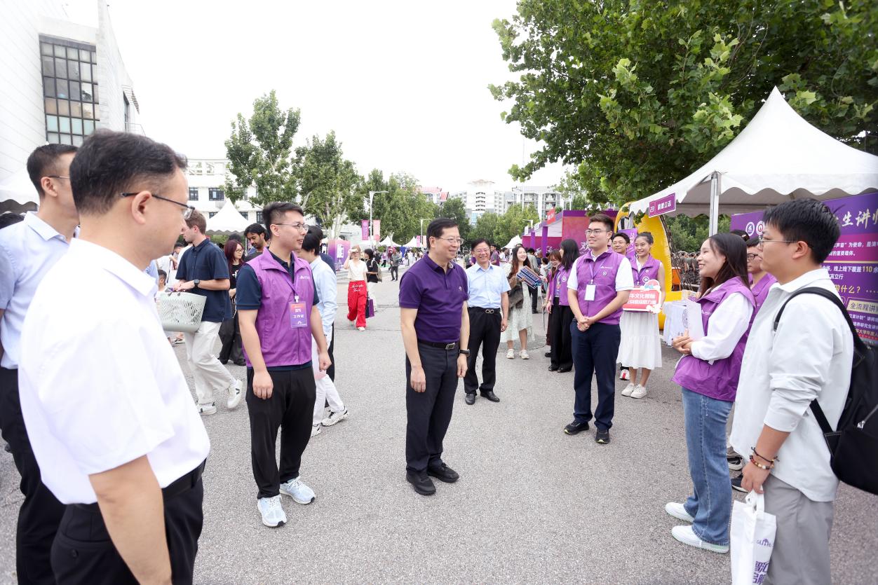 随后,邱勇一行来到学生服务中心(C楼)迎新点,一一走访该点位设置的特色活动展示和互动体验等区域。邱勇向参与迎新工作的师生表示感谢,并祝愿研究生新同学们在美丽的清华园收获友谊、砥砺成长,以更加饱满的精神状态开启人生新征程、不断取得新成绩。