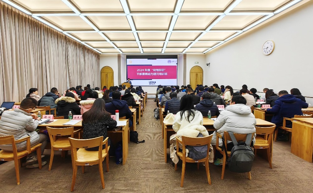 1月3日至4日,党委组织部举办2024年度“双向挂职”干部素质能力提升班,来自院系、机关等单位的“双向挂职”年轻干部共计60余人参加。党委组织部常务副部长张婷出席开班式并作动员讲话。