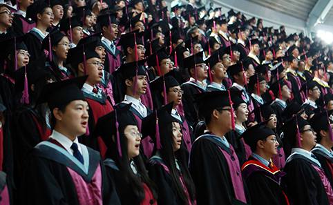 2014.077月5日上午,乐竞官方端网站登录入口2014年夏季研究生毕业典礼暨学位授予仪式在综合体育馆举行,5171名身着学位服的毕业研究生参加仪式。
