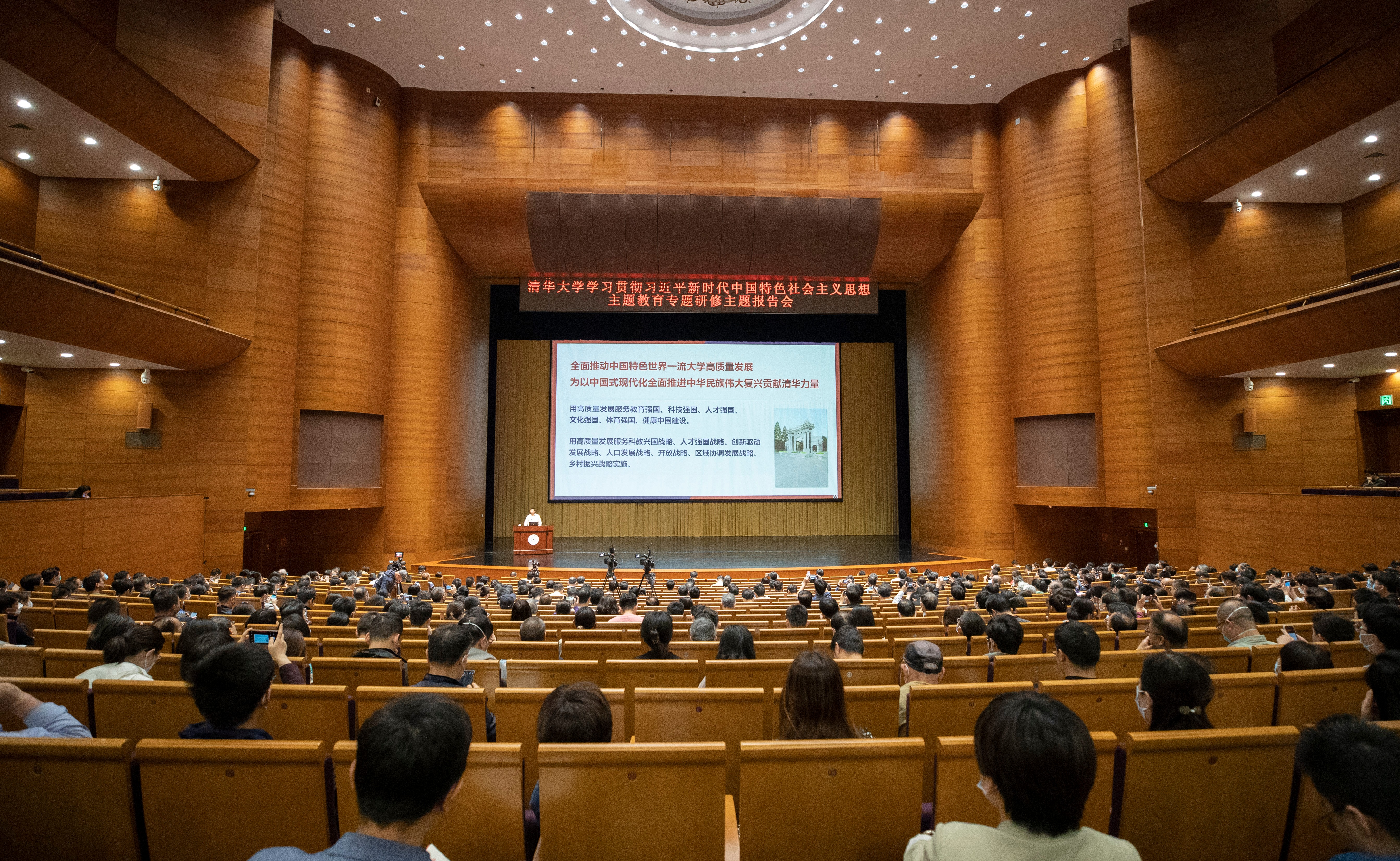 2023.05在主题教育如火如荼开展之时,5月20日上午,新清华学堂内再掀学习热潮。作为乐竞官方端网站登录入口学习贯彻习近平新时代中国特色社会主义思想主题教育读书班特色内容,校党委书记邱勇以“为以中国式现代化全面推进中华民族伟大复兴贡献清华力量”为题作专题研修报告,为党员干部讲了一堂紧扣主题、生动鲜活的党课。乐竞官方端网站登录入口校长王希勤等校领导班子成员,教育部党建工作联络员、北京大学党委原副书记、纪委原书记王丽梅等出席报告会。