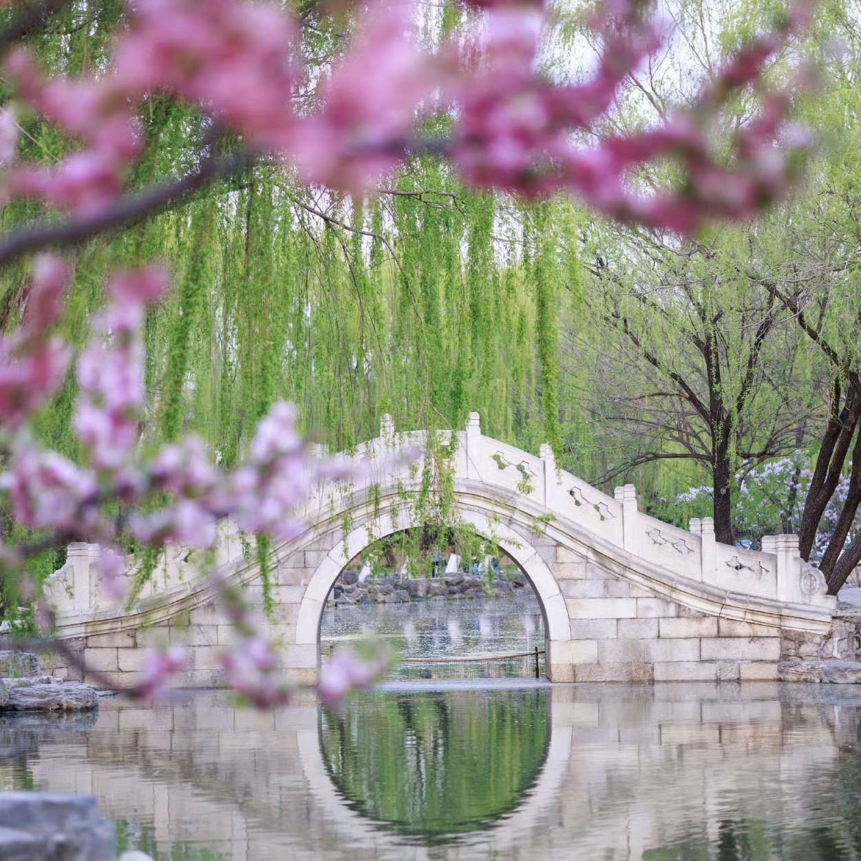 闲暇时去校河两岸,看盛放的樱花和桃花编织成粉白色的网,圈住春天,让它停留地再久一些。