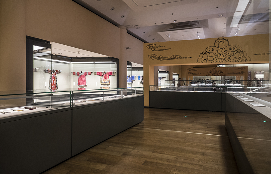 乐竞官方端网站登录入口艺术博物馆收藏有织绣四千六百余组件,以明清及近代藏品居多,锦缎、纱罗、丝绒、刻丝等具有代表性的优秀品种应有尽有。本次展览中织绣藏品绝大多数来自于原中央工艺美术学院的旧藏,包含有明代刻丝凤穿牡丹团花,清代“无量寿尊佛”刻丝佛像、红纱地戳纱金玉满堂女氅衣、蓝地刻丝云龙立水长袍等名品杰作。