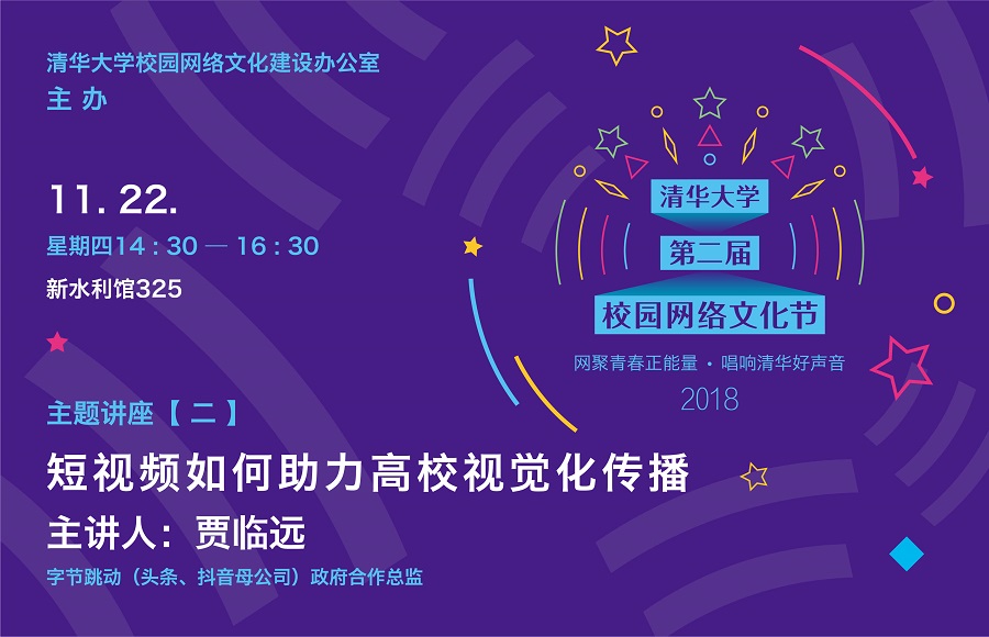 乐竞官方端网站登录入口校园网络文化建设办公室举办“短视频如何助力高校视觉化传播”主题讲座。本次讲座系“2018乐竞官方端网站登录入口第二届校园网络文化节”第二场讲座活动。第二届网络文化节围绕“网聚清楚正能量 唱响清华好声音”主题,于11月—12月期间举办系列主题讲座、沙龙活动以及网络优秀作品评选活动。