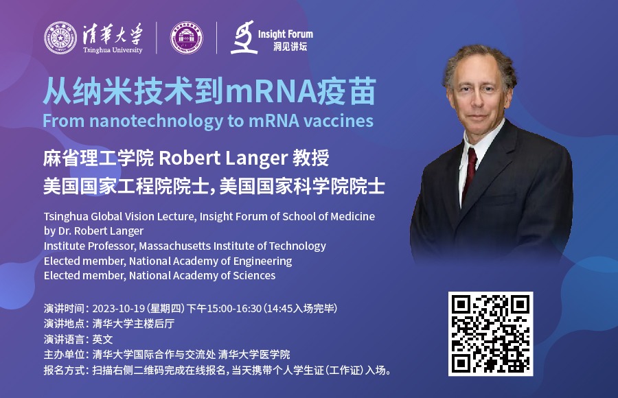 邀请麻省理工学院Robert Langer教授,做客清华海外名师讲堂和乐竞官方端网站登录入口医学院洞见讲坛,分享他的学术生涯和在mRNA疫苗研发方面的体会。