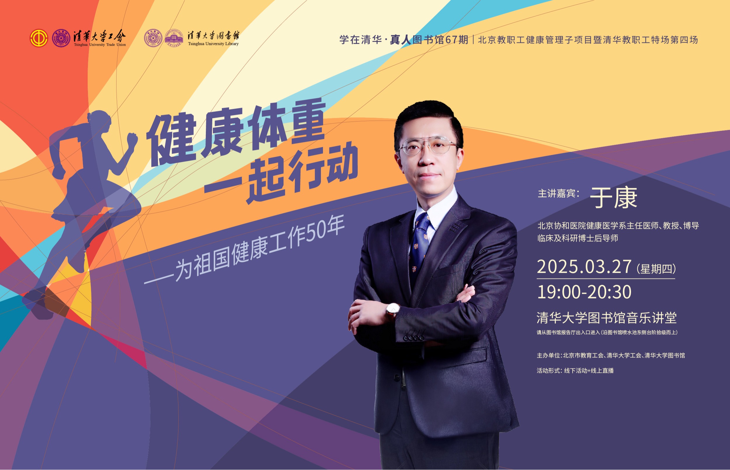 本期“学在清华·真人图书馆”活动将深度聚焦高校教职工健康管理议题。作为北京教职工健康管理子项目暨清华教职工特场第四场,本期特邀国家健康科普专家、北京协和医院健康医学系主任于康教授,让“体重管理年”的健康政策在校园场景中落地生根。